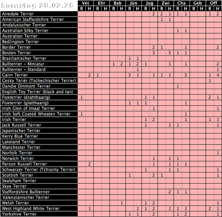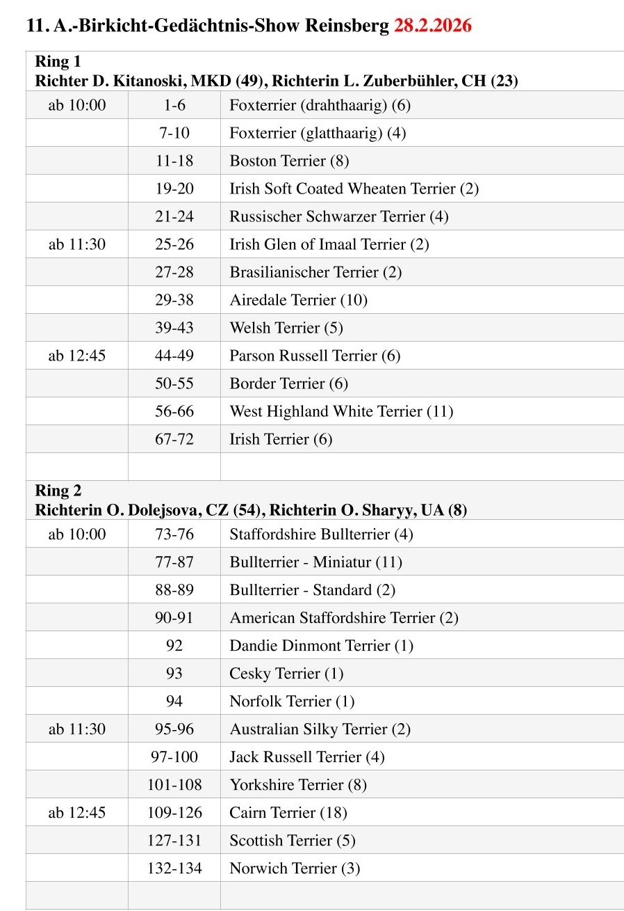 Teilnehmerlimit 150 Terrier/Tag.
